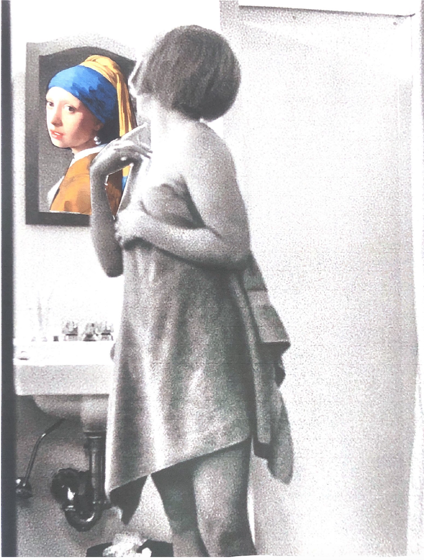 -Galatea of the Spheres, oil on canvas by Salvador Dali, 1952; Dali Theatre and Museum, Spain. -Untilted Film Still #2, photograph by Cindy Sherman, 1977; MoMa, NYC. -Hand with Reflecting Sphere, lithograph by MC Escher, 1935; National Gallery of Art, Washington DC. -Self-Portait with Cropped Hair, oil on canvas by Frida Kahlo, 1940; MoMa, NYC.